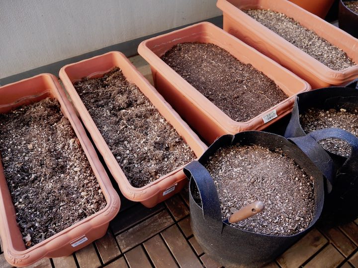💡 箱の中に厚手のポリ袋を敷いてから土を詰めると、水漏れや箱のふやけを二重に防げるのでおすすめです。